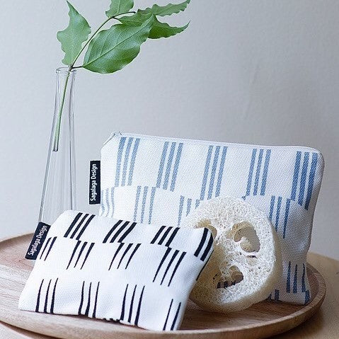 北欧の夜空に輝くオーロラをシンプルな形で表現したテキスタイルで作られたコットンポーチ。